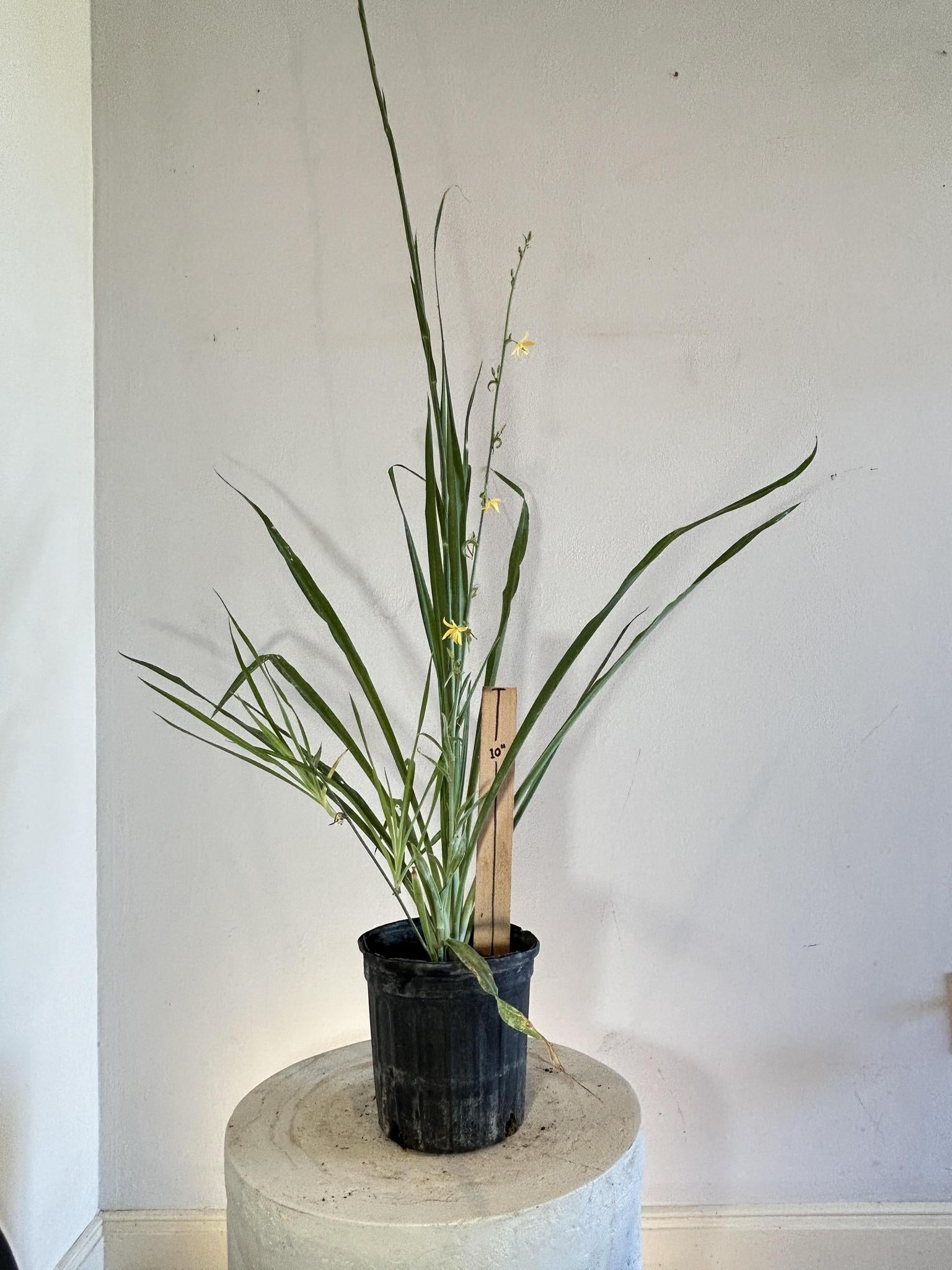A native of the Rio Grande Valley, this unusual member of the Lily family is a strongly upright, showy perennial. Flowers arrive in profusions of buttery-yellow in fall. Very drought tolerant and easy to grow.